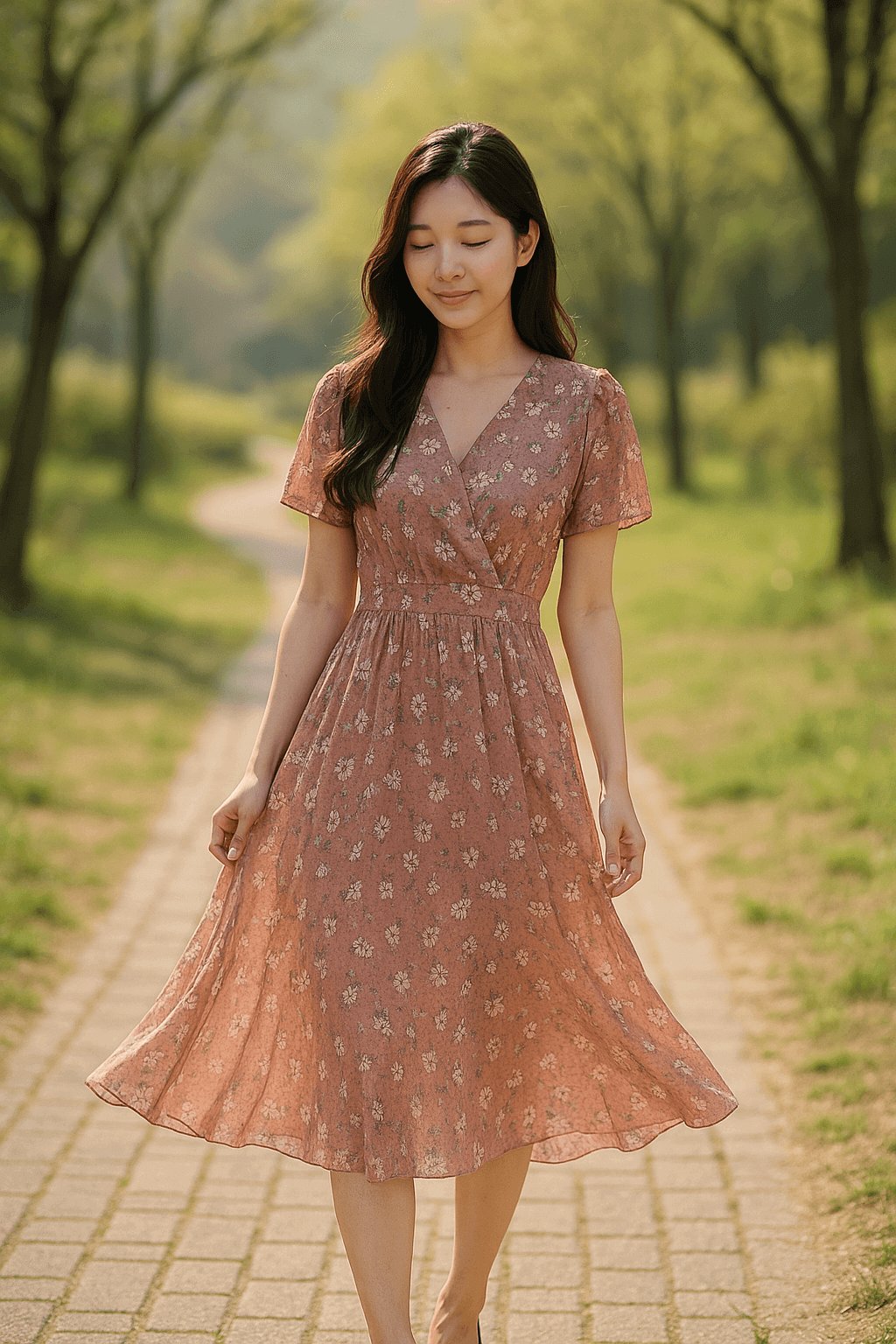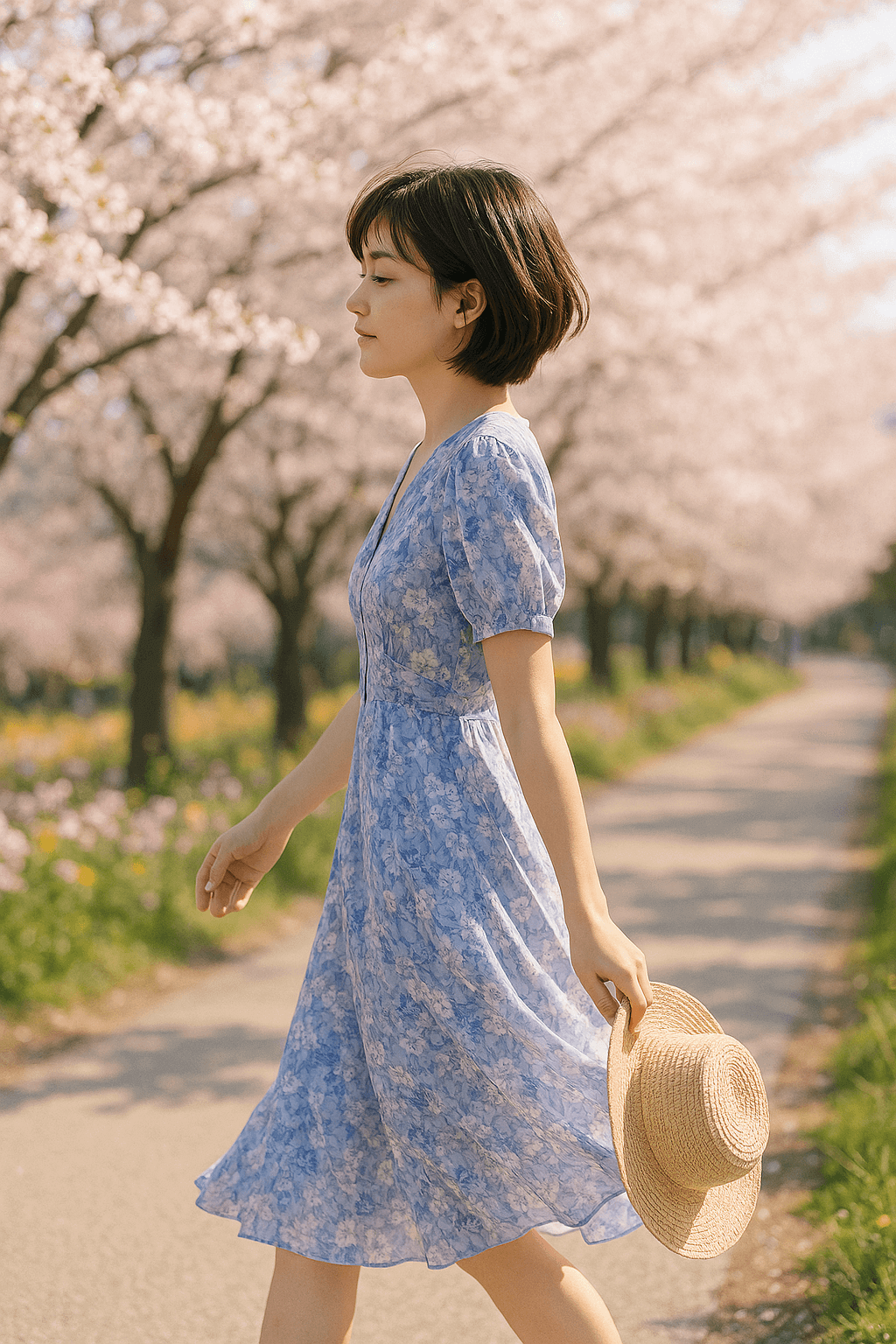 예쁜 봄 원피스를 입었다면 사진도 놓치면 안 되죠. 벚꽃 아래에서는 강한 햇빛보다 은은한 그늘에서 찍는 게 훨씬 분위기 있어요. 앉아서 치맛자락을 펼쳐서 찍거나, 뒤돌아서 바람에 흩날리는 머리카락을 담으면 인생샷 가능! 액세서리는 미니백 하나나 진주 귀걸이 정도로 포인트를 주고, 메이크업은 코랄 톤으로 가볍게~
